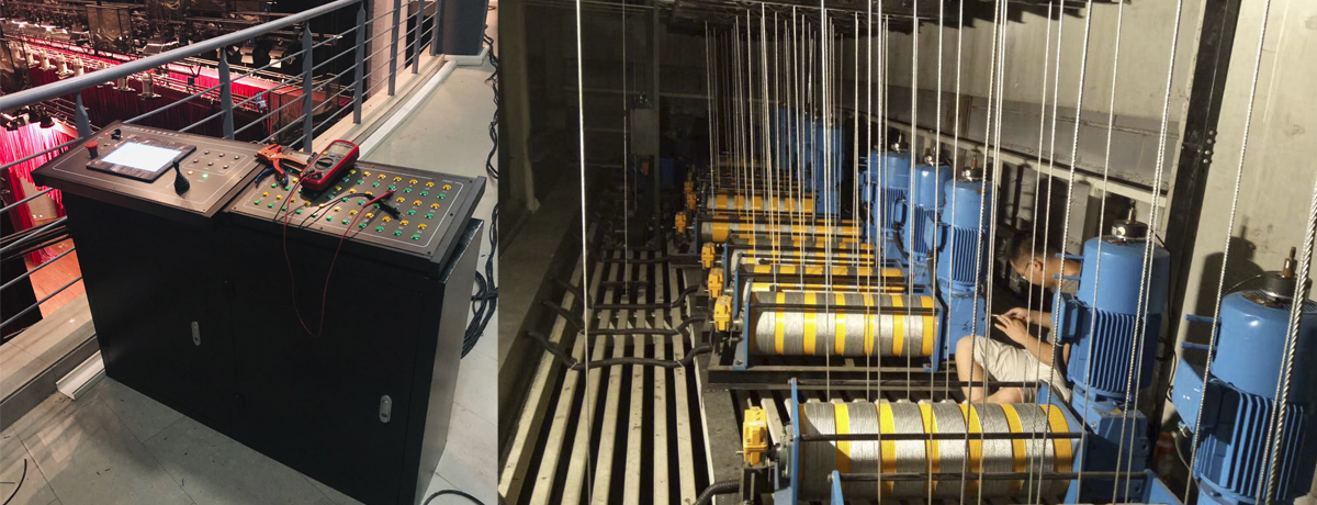 上海古權(quán)電子科技有限公司為此次改造提供了所有設備及全程安裝調(diào)試服務。更換了電動景幕升降系統(tǒng)及電動燈光升降系統(tǒng)共計16套,主要包含電動吊桿機、支點滑輪、轉(zhuǎn)向滑輪組、限位裝置、鋼絲繩和舞臺機械控制系統(tǒng)。嚴格按照規(guī)范進行施工,滿足使用方的要求。設備安裝配線準確、可靠。經(jīng)過設備的信號測試,單機負載能力、整體組合能力均達到要求,穩(wěn)定性、安全性、控制指令響應性均達到要求。各電氣線路間經(jīng)絕緣電阻試驗均合格,線槽敷設連接緊密,接口光滑,導線敷設線整齊,有標識。設備安裝牢固,滿足使用需求。本工程嚴格按照合同約定的預算進行控制,完成合同約定的全部內(nèi)容。實施的全過程嚴格執(zhí)行國家的安全生產(chǎn)規(guī)定,履行各項安全生產(chǎn)的規(guī)章制度,達到了合同約定的安全生產(chǎn)目標,全過程無安全生產(chǎn)事故。