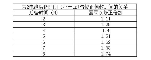 則409/3=136Ah,還需乘以修正系數(shù),見(jiàn)表1,136×1.41=192Ah,即可選12V、65Ah電池3組(32塊/組)。