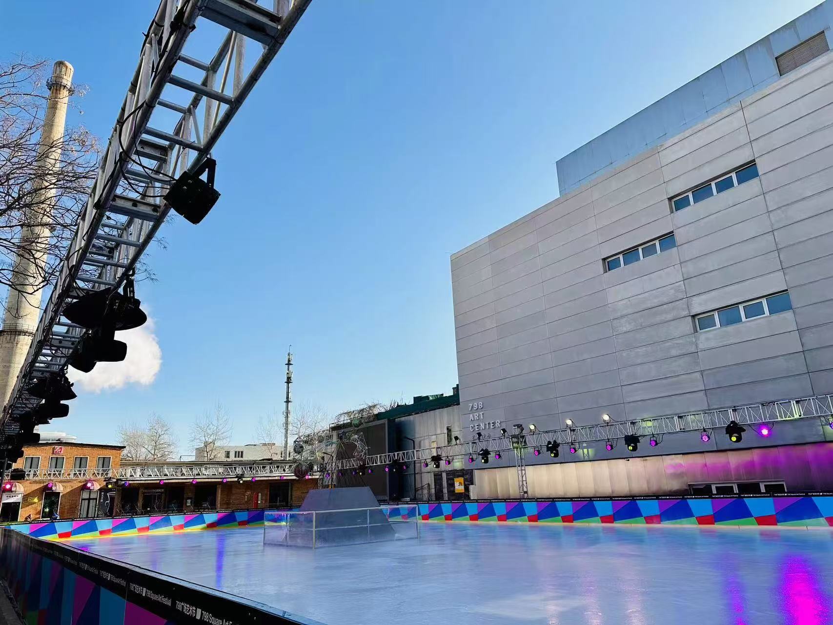 2023年冬季,北京798藝術(shù)區(qū)在其中心廣場(chǎng)成功打造了一個(gè)限定版藝術(shù)真冰場(chǎng),作為首屆"798廣場(chǎng)藝術(shù)節(jié)"的核心項(xiàng)目,該冰場(chǎng)秉持 "藝術(shù)+文娛" 的定位,將公共藝術(shù)與冬季運(yùn)動(dòng)創(chuàng)新融合,通過在冰場(chǎng)中央展陳藝術(shù)家童昆鳥的大型裝置作品《塔尖游戲》——其塔狀結(jié)構(gòu)與頂端懸掛的13顆"謠言之球"隨風(fēng)流轉(zhuǎn),與滑冰者的身影交織,營造出極富趣味的互動(dòng)藝術(shù)體驗(yàn);冰場(chǎng)在宣傳推廣上緊扣藝術(shù)特色,不僅邀請(qǐng)萬域芳菲花樣滑冰俱樂部的運(yùn)動(dòng)員帶來《功夫熊貓》冰舞表演及專業(yè)冰球表演來引爆開幕關(guān)注,更聯(lián)合藝術(shù)家毛褲在冰場(chǎng)周邊進(jìn)行現(xiàn)場(chǎng)涂鴉并設(shè)置系列"毛腿"彩蛋裝置,吸引游客參與798冬日City Walk打卡,有效借助社交媒體形成話題傳播;同時(shí),藝術(shù)節(jié)通過策劃覆蓋全周期的多元活動(dòng)——包括潮流運(yùn)動(dòng)單元的涂鴉探索、民俗文化單元的春節(jié)廟會(huì)與元宵燈會(huì),并聯(lián)動(dòng)園區(qū)戶外空間舉辦藝術(shù)市集、親子工坊等,持續(xù)吸引家庭、游客及藝術(shù)愛好者廣泛參與,成功將傳統(tǒng)冰雪娛樂提升為兼具藝術(shù)性、互動(dòng)性與文化內(nèi)涵的城市冬季新地標(biāo),極大豐富了北京市民的冬日文旅生活。