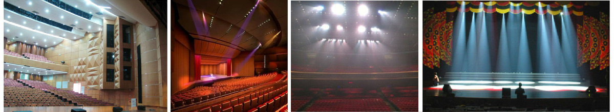 4、散光燈:光線漫散、均稱、投射面積大,分為天排散光和地排散光,常見的0.5KW、1KW、1.25KW、2KW等,多用于天幕照射,也可用于劇場主席臺的普遍照明。