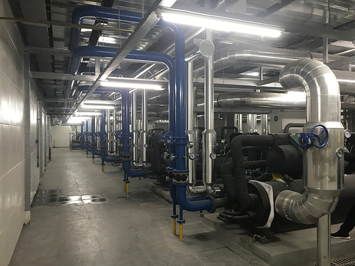 系統(tǒng)常規(guī)配套:制冷主機、冷卻塔、冷凍水水泵、冷卻水水泵、水箱、管道及閥門等。