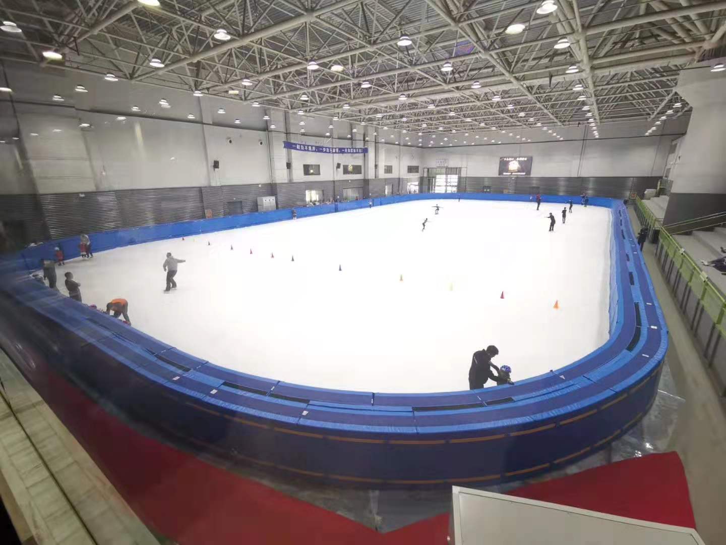 樂性滑冰場的尺寸可以任意確定。通常按每個(gè)滑冰人員占有面積為 2.3~2.8 ㎡考慮,當(dāng)滑行面積為1.5 ㎡/人的時(shí)候,便會擁擠得無法滑行。若進(jìn)行花樣滑冰時(shí),每人需要直徑為 4.9m 的場地。一個(gè) 26m×61m、拐角半徑為 8.5m 的滑冰場,具有滑冰面積 1517 ㎡,約可供 650 個(gè)滑冰者進(jìn)行娛樂。