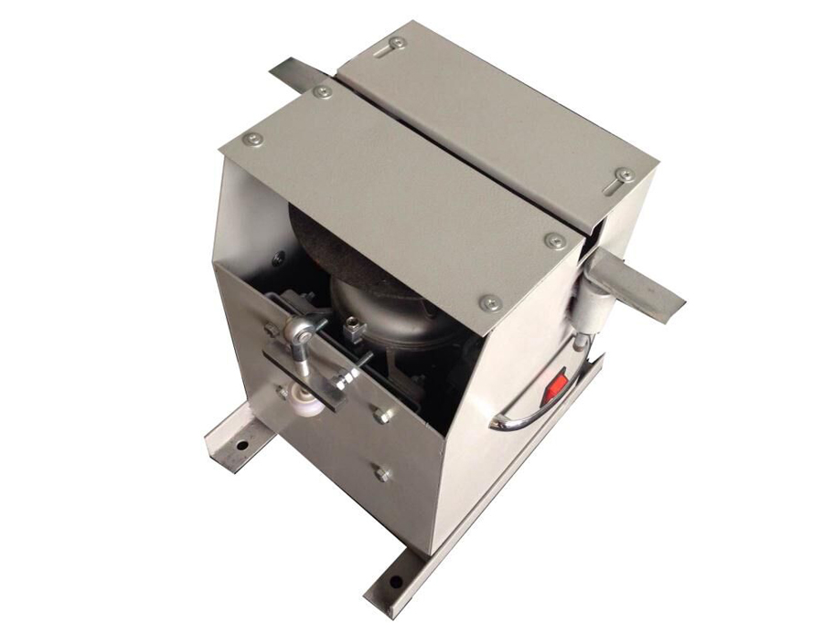 本產(chǎn)品結(jié)構(gòu)以電機(jī)為驅(qū)動(dòng)主體,配以支撐架,通過電機(jī)帶動(dòng)砂輪片轉(zhuǎn)動(dòng),通過更換砂輪片從而對各種速滑刀、花樣刀、冰球刀等刀刃進(jìn)行磨削。